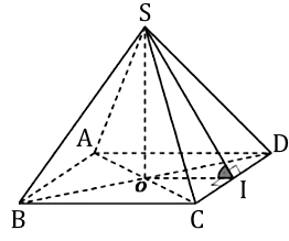 Cho hình chóp đều S.ABCD có cạnh đáy bằng $2\sqrt{3}$. Góc nhị diện $\left\lbrack {A,CD,S} \right\rbrack$ bằng $60^{\circ}$ Tính thể tích khối chóp S.ABCD .
