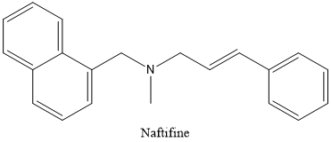 Naftifine là một chất có tác dụng chống nấm, thường được dùng dưới dạng muối naftifine hydrochlroride. Naftifine là chất có cấu tạo như hình dưới đây.