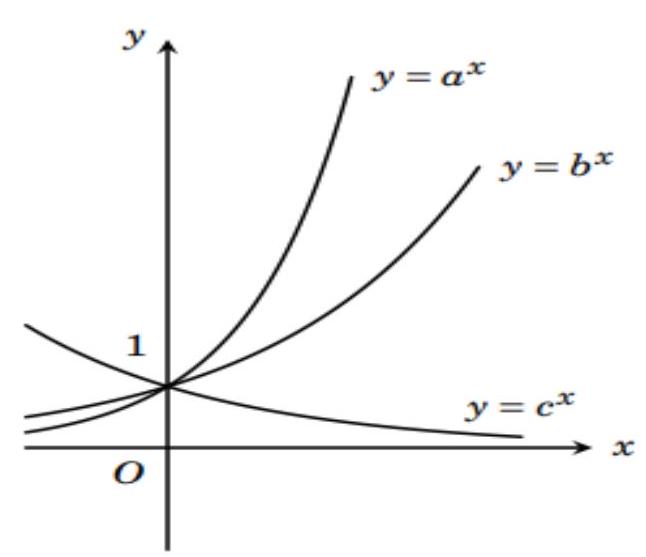Hình vẽ bên là đồ thị của các hàm số mũ $y = a^{x};y = b^{x};y = c^{x}$. Xét tính đúng, sai của