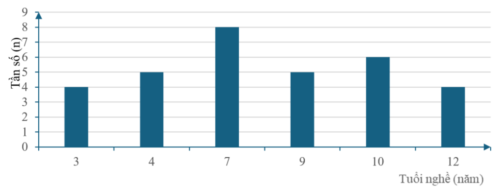 Tuổi nghề (đơn vị: năm) của 32 giáo viên ở một trường trung học cơ sở được biểu diễn