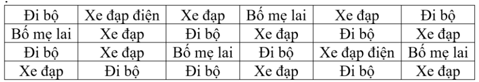 Khảo sát về phương tiện đến trường của các bạn học sinh nam lớp 9A2, bạn Mai