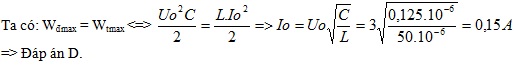 Mạch dao động điện từ gồm một tụ điện có C = 0,125 μF và một cuộn cảm có L = 50 μH.