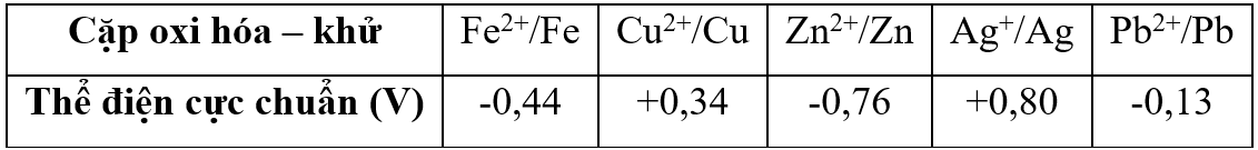 Cho bảng giá trị thế điện cực chuẩn của các cặp oxi hóa – khử như sau: