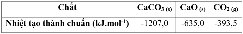Cho biết: $\Delta$rSo298 = 159,26 J.mol-1.K-1 và nhiệt tạo thành chuẩn của một số chất như sau:
