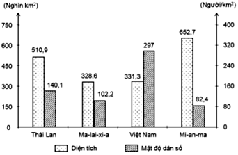 | b) Biểu đồ thể hiện tốc độ tăng trưởng diện tích và mật độ dân số một số quốc gia. | ||