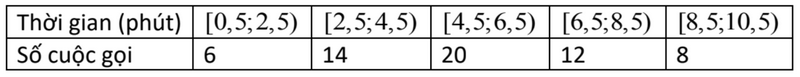 Mẫu số liệu ghép nhóm về thời gian gọi (phút) của một số cuộc điện thoại