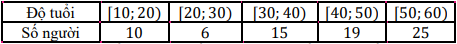 Thống kê độ tuổi tập thể dục thể thao hàng ngày trong một cụm dân cư có bảng số liệu sau