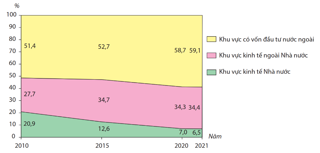 Biểu đồ sau thể hiện nội dung nào về giá trị sản xuất công nghiệp nước ta giai đoạn 2010 - 2021?