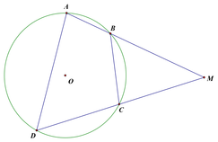 Tứ giác $ABCD$ nội tiếp đường tròn có hai cạnh đối $AB$ và $CD$ cắt nhau tại $M$ và