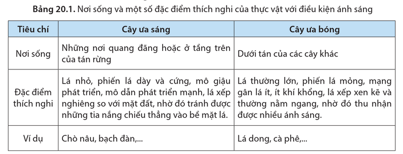 Đặc điểm nào sau đây không phải là của cây ưa sáng?
