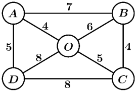 Trong một trò chơi điện tử, người chơi sẽ khởi đầu tại một trong năm vị trí xuất phát tại các điểm A, B, C, D, O. Ban đầu, người chơi sẽ có 50 HP (HP là từ viết tắt của: "Health Points") và người chơi sẽ đi từ điểm xuất phát đến các điểm còn lại để tiêu diệt địch (các đường đi qua sẽ không thể quay trở lại). Ửng với mỗi đường đi qua, người chơi sẽ mất một lượng HP nhất định được ký hiệu trên sơ đồ dưới đây. Sau cùng, người chơi phải quay lại vị trí xuất phát và tiêu diệt địch cuối cùng ngay tại đó. Biết đường đi cuối cùng này sẽ mất gấp đôi lượng HP yêu cầu. Hỏi sau khi hoàn thành nhiệm vụ thì người chơi có thể giữ lại tối đa bao nhiêu HP?