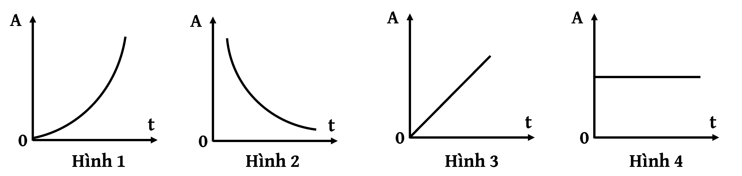 Một động cơ làm việc với công suất không đổi, đồ thị công của động cơ thực hiện theo thời gian có dạng nào sau đây?