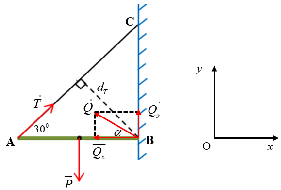 Thanh AB đồng chất tiết diện đều có trọng lượng P, được gắn vào tường tại