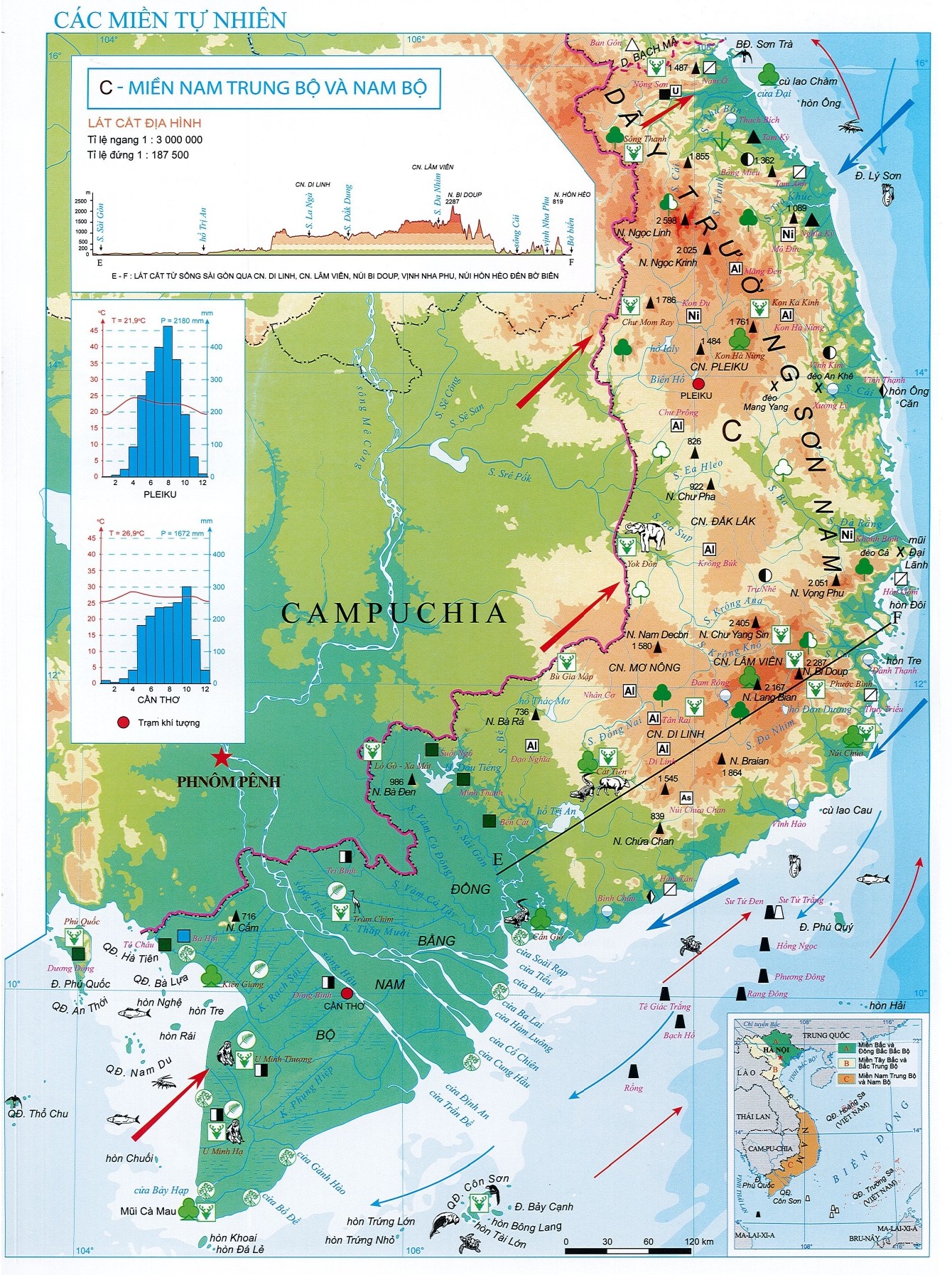 Dựa vào bản đồ dưới đây (Atlat Địa lí Việt Nam, Nxb Giáo dục Việt Nam, 2024) và kiến thức đã học, trả lời 3 câu hỏi dưới đây.