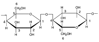 Cellulose là polymer thiên nhiên, có công thức phân tử (C6H10O5)n, được cấu tạo như sau: