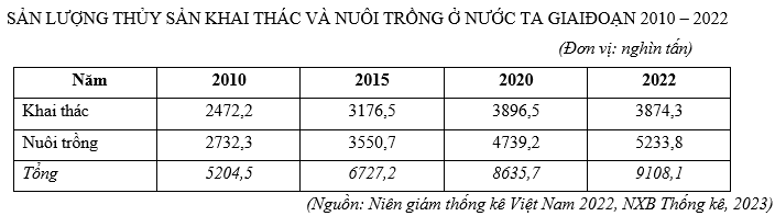 c) Dựa vào tổng sản lượng thuỷ sản giai đoạn 2010 – 2022.