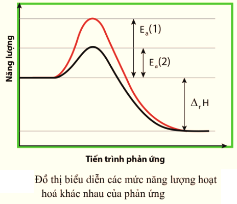Hình dưới biểu diễn cùng một phản ứng nhưng năng lượng hoạt hoá khác nhau. Phản ứng này thuận lợi về năng lượng.