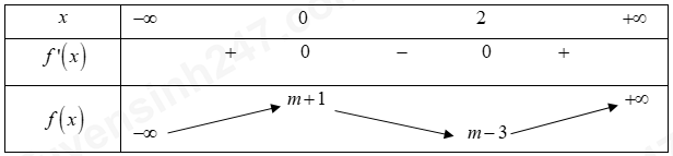 Dựa vào thông tin dưới đây để trả lời các câu sau Cho hàm số $f(x) = x^{3} - 3x^{2} + m + 1$
