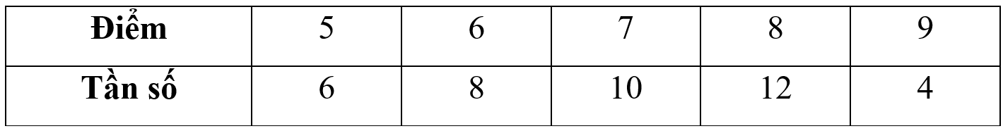Thống kê điểm kiểm tra môn Toán của 40 học sinh lớp 9A như sau. Điểm nào có số học sinh