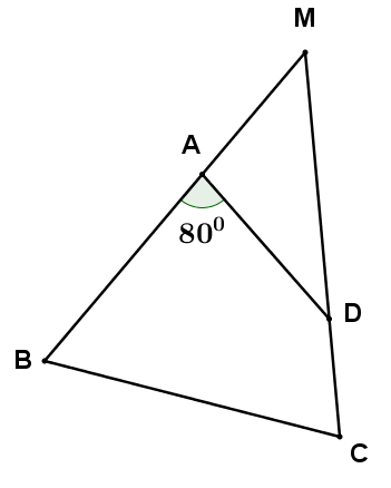 Tứ giác ABCD nội tiếp đường tròn có hai cạnh đối AB và CD cắt nhau tại M và $\angle BAD = 80^{0}$ thì $\angle BCM = ?$