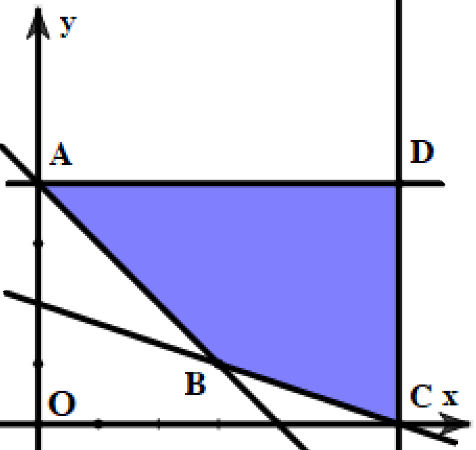 Một công ty cần thuê xe để chở ít nhất 120 người và 16 tấn hàng. Tại bãi cho thuê xe có hai loại xe là A và B. Xe loại A có 12 chiếc, xe loại B có 8 chiếc. Giá thuê mỗi chiếc xe loại A và B lần lượt là 3 triệu đồng và 6 triệu đồng. Biết xe loại A chở tối đa 10 người và 2 tấn hàng, xe loại B chở tối đa 30 người và 2 tấn hàng. Gọi $x,y$ (chiếc xe) lần lượt là số xe loại A và loại B mà công ty này cần thuê.