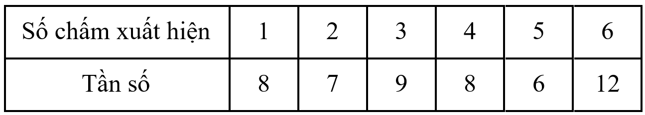 Gieo một con xúc xắc 50 lần và được kết quả như sau: