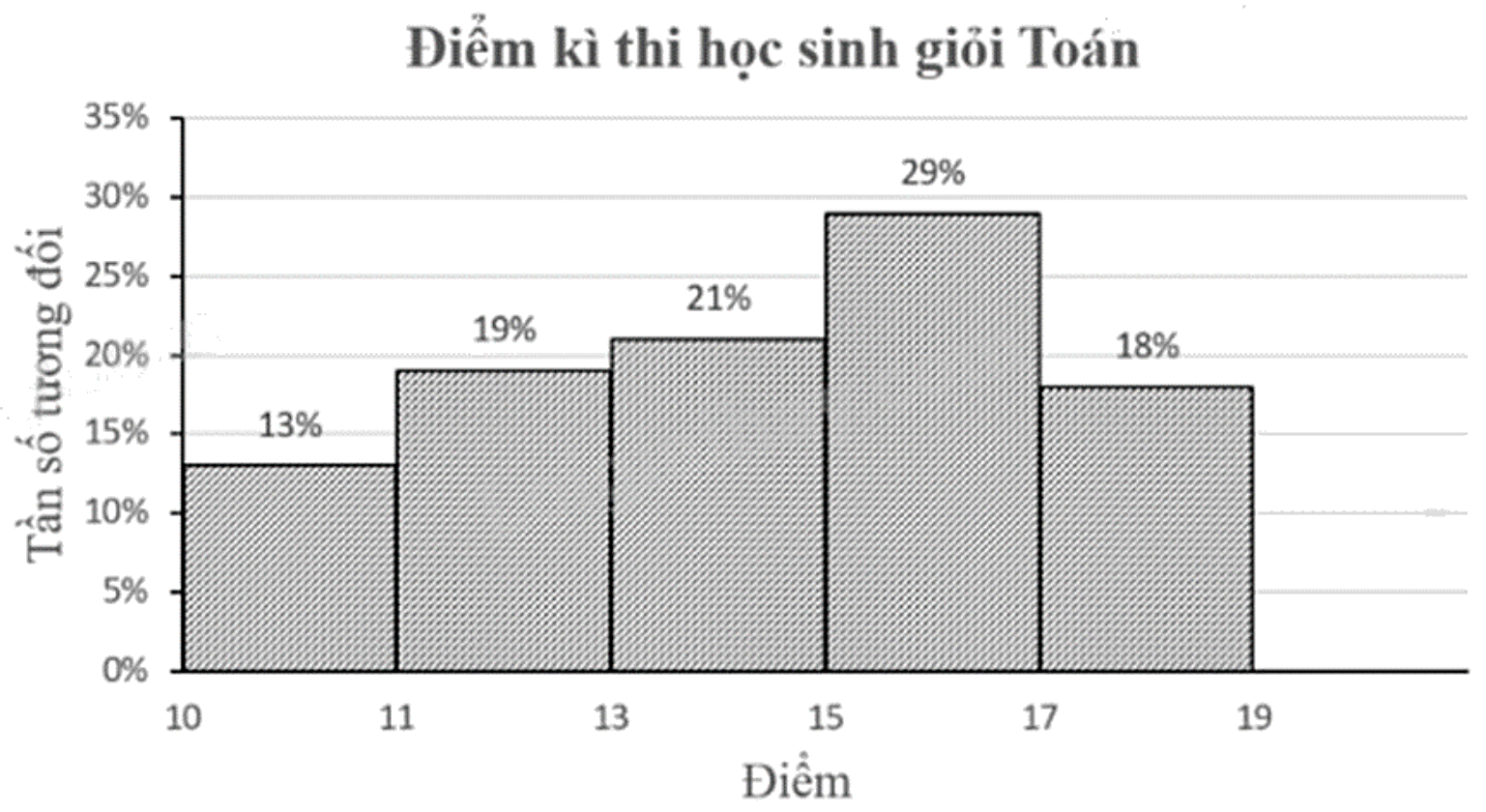Trong một kỳ thi học sinh giỏi Toán (thang điểm 20) của 100 học sinh, kết quả được cho bởi biểu đồ sau: