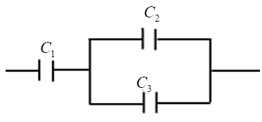 Ba tụ điện \({C_1} = 3,6nF;{C_2} = 4nF;{C_3} = 6nF\) mắc như hình vẽ. Tính điện dung của bộ tụ.