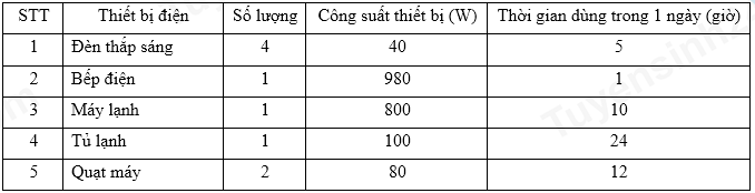 Trong tháng hai (29 ngày), nhà anh Minh sử dụng điện như bảng sau:
