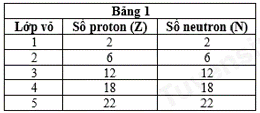 Tính tổng số proton và neutron ở 2 lớp vỏ đầu tiên dựa vào dữ liệu bảng 1.