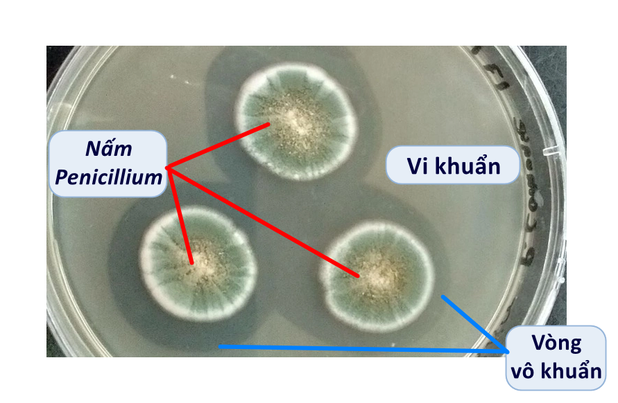 Loài nấm penixilin trong quá trình sống tiết ra kháng sinh penicillin giết chết nhiều loài vi sinh