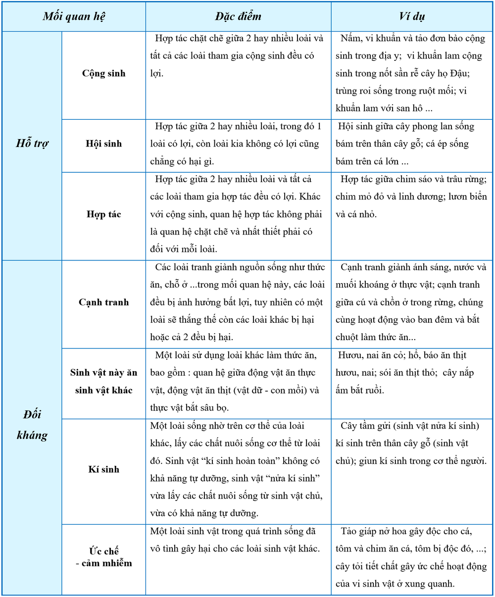 Mối quan hệ giữa các loài trong quần xã có 2 nhóm lớn :