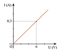 Hình bên mô tả đồ thị biểu diễn sự phụ thuộc của cường độ dòng điện đi qua một dây dẫn vào hiệu điện thế giữa hai đầu dây dẫn đó. Khi U = 7 V thì I có giá trị bằng bao nhiêu ampe?