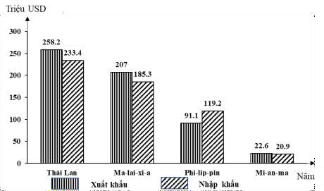 | c) Thái Lan, Phi-lip-pin và Mi-an-ma là nước nhập siêu. | ||