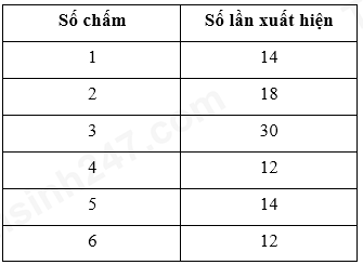 Gieo con xúc xắc 100 lần, kết quả thu được ghi ở bảng sau: