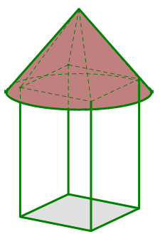 Một công ty du lịch đầu tư xây dựng 24 nhà chòi trong khu du lịch sinh thái. Mô hình thiết kế như hình vẽ, mái nhà có hình dạng là mặt xung quanh của hình nón với bán kính đáy là 3m và chiều cao của mái nhà là 4m. Chi phí làm mái là 2 triệu đồng/m2, chi phí làm hệ thống cột, khung nhà và nền nhà là 100 triệu đồng/nhà chòi. Công ty chỉ trả được 30% tổng chi phí xây dựng 24 nhà chòi đó. Số tiền còn thiếu, công ty phải vay ngân hàng với lãi suất 10%/năm (với thể thức lãi kép, lãi suất không thay đổi trong thời gian vay). Sau đúng 5 năm, công ty trả nợ ngân hàng cả gốc và lãi với số tiền là (làm tròn đến hàng ngàn)