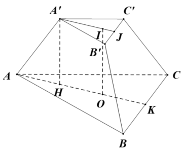 Một hình chóp cụt đều $ABC.A'B'C'$ có cạnh đáy lớn bằng 4, cạnh đáy nhỏ bằng 2 và chiều