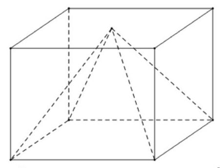 Một hộp quà hình lập phương chứa một mô hình đồ chơi đặc ruột có dạng hình chóp tứ