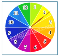 Hình vẽ dưới đây mô tả một đĩa tròn bằng bìa cứng được chia thành \(12\) phần bằng nhau và ghi các số \(1;2;3;...;12\). Chiếc kim được gắn cố định vào trục quay ở tâm của đĩa.