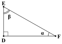Trong hình vẽ, biết \(\angle {{\rm{DFE}}} = \alpha ,{\rm{ }}\angle {{\rm{DEF}}} = \beta .\) Khẳng định nào sau đây không đúng ?