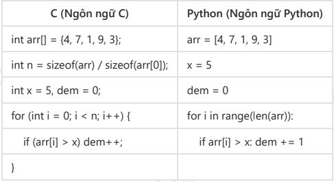 Lý thuyết Đếm số phần tử > x (C/Python)