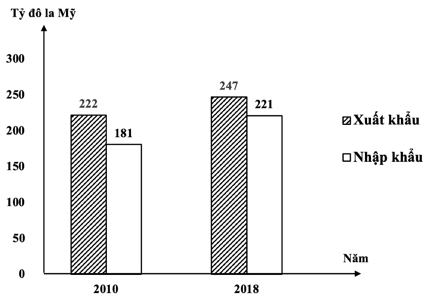 | b) Tổng trị giá xuất nhập khẩu của Ma-lai-xi-a tăng gấp 1,16 lần trong giai đoạn 2010 – 2018. | ||