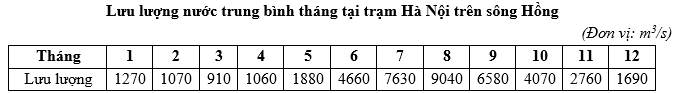 Căn cứ vào bảng số liệu trên, hãy cho biết tổng lưu lượng nước thời kì mùa lũ của sông Hồng chảy qua trạm Hà Nội lớn hơn tổng lưu lượng nước trong thời kì mùa cạn là bao nhiêu lần (làm tròn kết quả đến hàng đơn vị).
