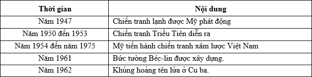 | a) Những nội dung trên tư liệu nằm trong tiến trình phát triển của cuộc Chiến tranh lạnh. | ||