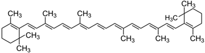 β-carotene có rất nhiều trong rau quả xanh và vàng đặc biệt là ở quả gấc, cà rốt… β -carotene được cơ thể chuyển hóa thành vitamin A rất cần thiết cho cơ thể. Công thức cấu tạo của β -carotene là