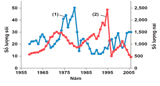 | b) Đồ thị (2) tương ứng với sự biến động số lượng cá thể của quần thể chó sói. | ||