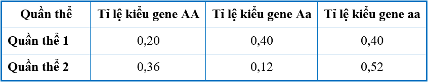 Ở một loài động vật ngẫu phối, xét một gene có hai allele, allele A trội hoàn toàn so với allele a. Biết 2 quần thể thuộc loài này có tỉ lệ các kiểu gene như sau: