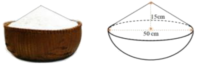 Cho hình sau là một thúng gạo vun đầy. Thúng có dạng nửa hình cầu với đường kính 50 cm,