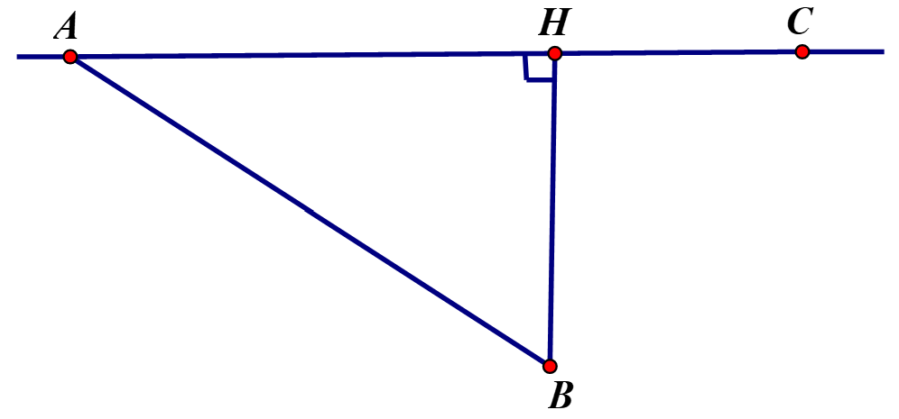 Một ô tô đang chuyển động trên đường thẳng AC theo hướng từ A đi về phía C với vận tốc $10\,\text{m/s}$, một người đứng tại B cách mép đường một khoảng $BH = 50$m. Khi khoảng cách giữa người và ô tô là $AB = 200$m thì người đó bắt đầu chạy ra đón ô tô (coi ô tô và người chuyển động thẳng đều). Tìm vận tốc tối thiểu và hướng chạy của người tạo với AB góc bao nhiêu để đón được ô tô (tham khảo hình vẽ dưới đây).