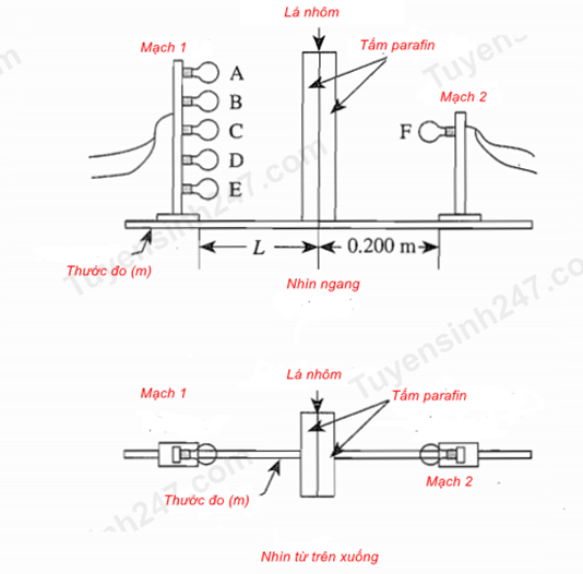 Trong các thí nghiệm sau, đế của mạch 2 luôn cách lá nhôm 0,2m và L là khoảng cách từ đế của mạch 1 đến lá nhôm.